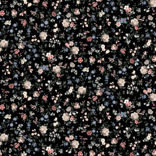 The life-like flower patterns in Art of Midnight black background and warm white flowers. Choose from an assortment of masterpiece prints to let your inner artist turn it in to a quilt creation. The lush color palette of midnight, dark sage, warm white and taupe is a great addition to any home decor.